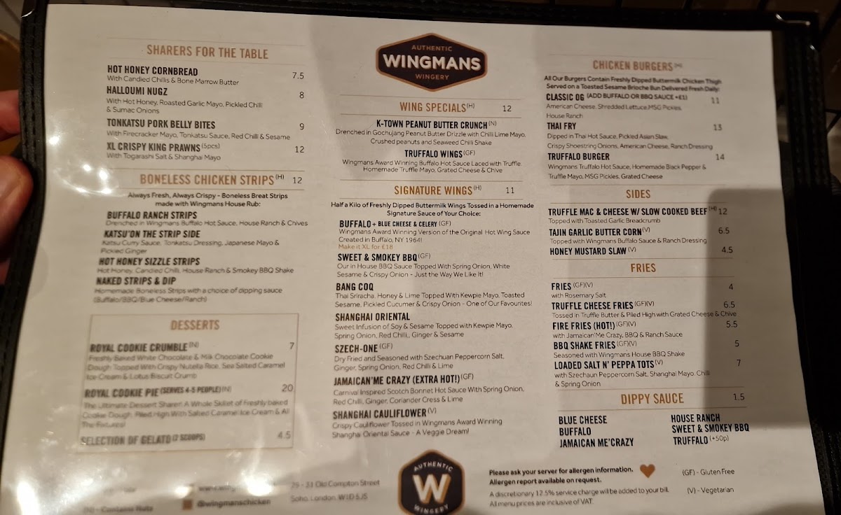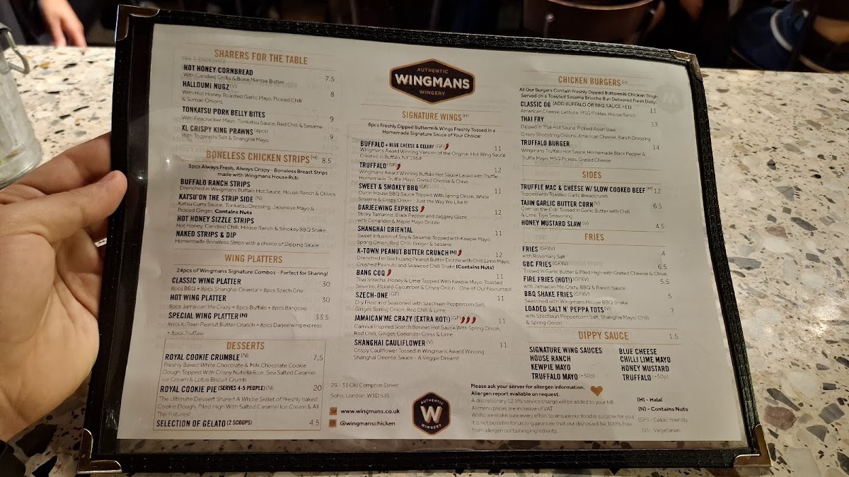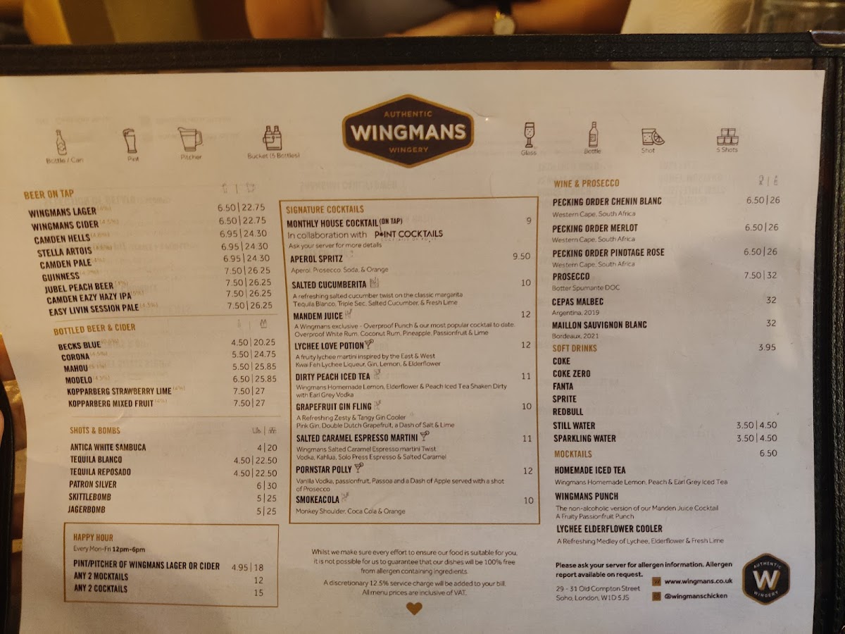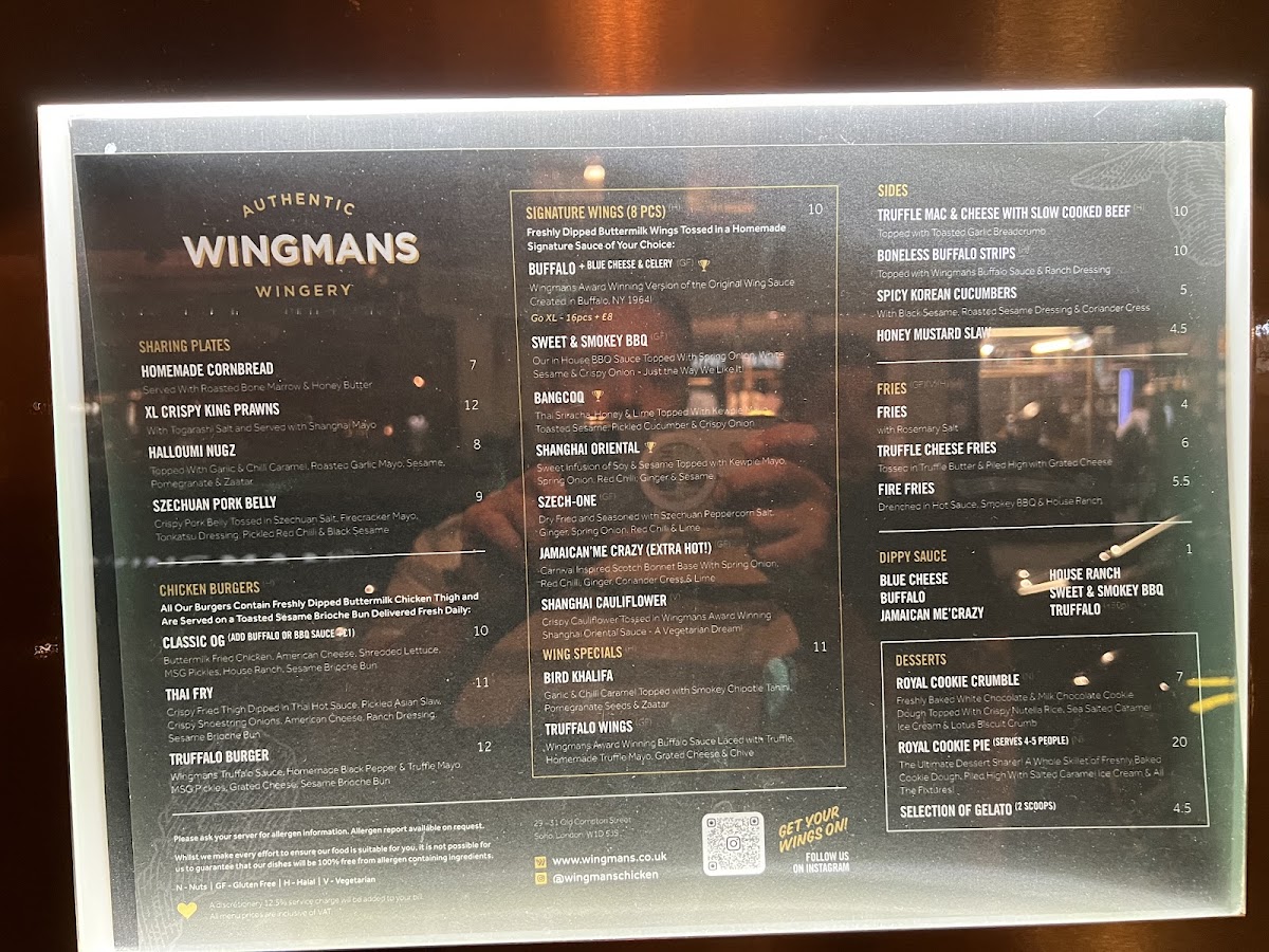 Wingmans, located in the vibrant heart of London on Old Compton Street, is a culinary gem renowned for its exceptional wings and flavorful dishes. With a menu that features a range of tantalizing options, including their signature Buffalo and Szechuan wings, the restaurant has garnered rave reviews from satisfied customers. The atmosphere is lively, making it perfect for group gatherings, especially during their popular bottomless brunch. Patrons rave about the attentive service and delicious offerings like buttermilk fried chicken burgers and homemade cornbread. With a commitment to flavor and quality, Wingmans is a must-visit for wing lovers and food enthusiasts alike.